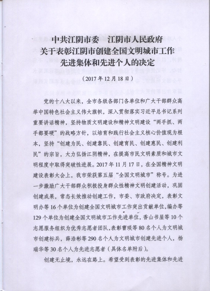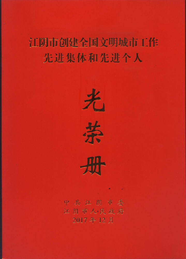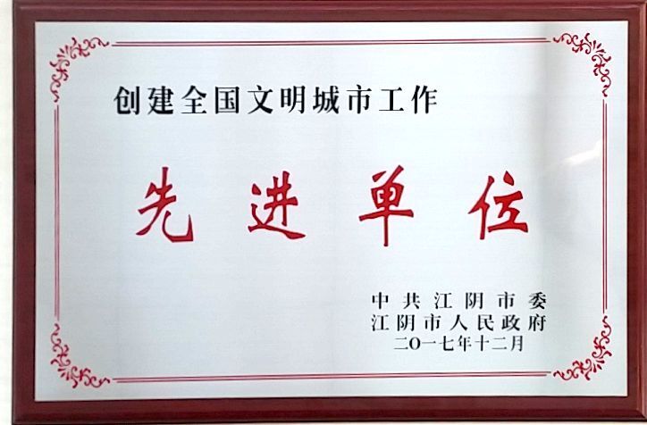 公司被評(píng)為17年江陰創(chuàng)建文明城市工作先進(jìn)集體