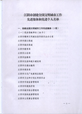全國(guó)文明城市,是一個(gè)城市最有價(jià)值的品牌,是一座城市的最高榮譽(yù),創(chuàng)建全國(guó)文明城市是優(yōu)化經(jīng)濟(jì)發(fā)展環(huán)境,營(yíng)造健康、文明、向上的良好社會(huì)風(fēng)尚的重要途徑,也是提高公民文明素質(zhì)、滿足人民群眾不斷增長(zhǎng)的精神文化需要,作為江陰城市市政基礎(chǔ)設(shè)施建設(shè)的主力軍之一,公司高度重視文明城市創(chuàng)建工作,緊緊圍繞上級(jí)主管提出的創(chuàng)建文明城市的目標(biāo)任務(wù)和工作要求,切實(shí)加強(qiáng)領(lǐng)導(dǎo),明確目標(biāo),落實(shí)措施,責(zé)任到位,扎扎實(shí)實(shí)開展文明創(chuàng)建活動(dòng),樹優(yōu)良作風(fēng)、抓優(yōu)質(zhì)服務(wù)、創(chuàng)優(yōu)美環(huán)境、樹文明形象,取得了明顯成效。